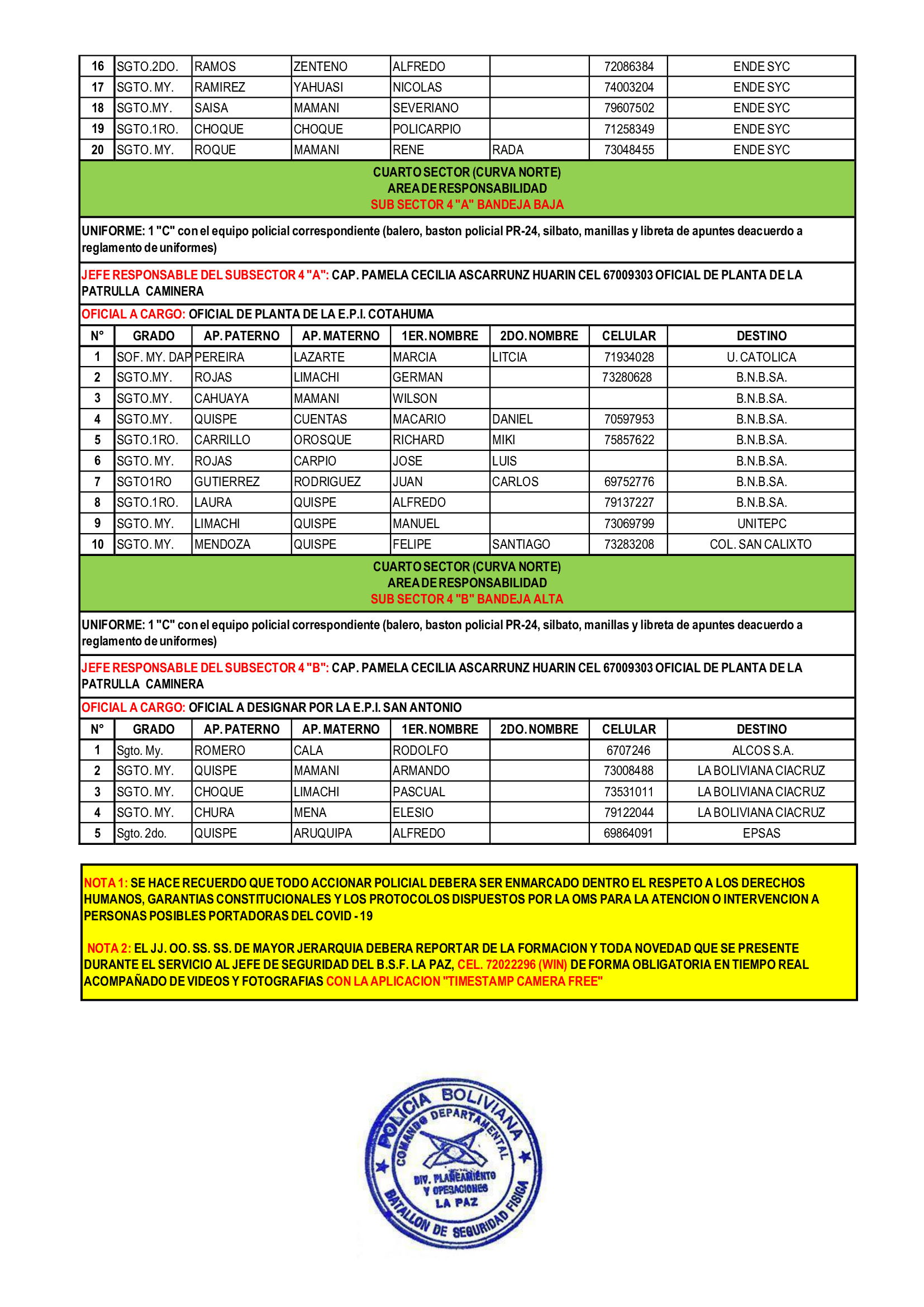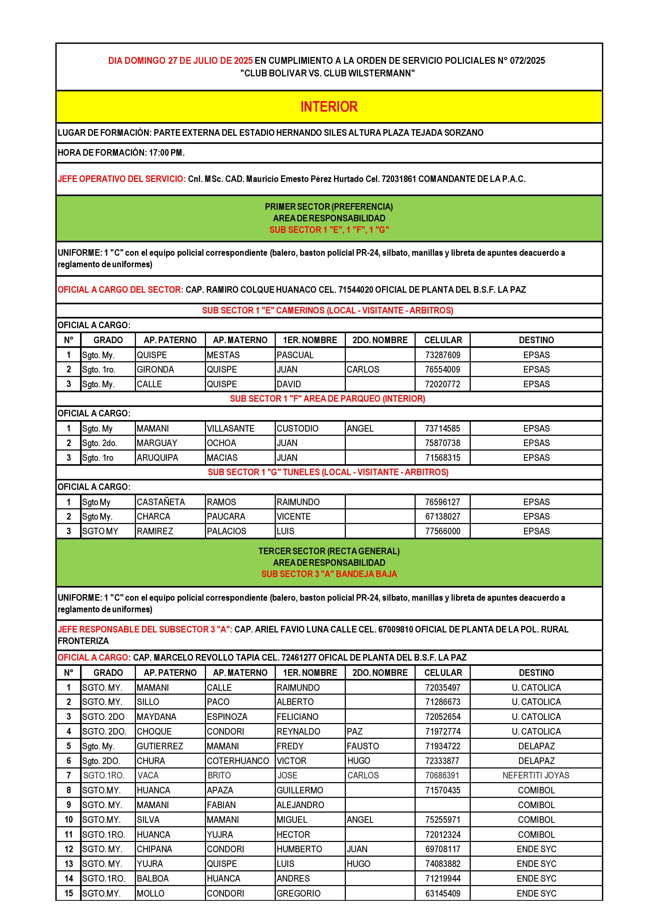 SERVICIO EXTRAORDINARIO - "CLUB BOLIVAR VS. CLUB WILSTERMANN" - DOMINGO 27/07/2025 - OBSERVAR LA HORA, LUGAR DE FORMACION Y TIPO DE UNIFORME PARA EL SERVICIO